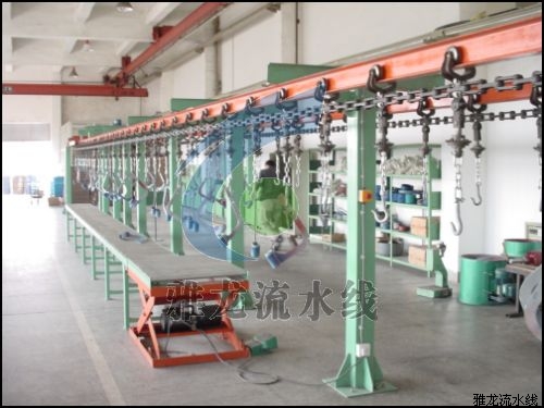 山西悬挂输送线,山西轻型悬挂输送线山西,悬挂流水线主要用于两种场景下,第一:车间零部件物流传送,比如摩托车生产线,配套零部件通过悬挂系统进行传送零部件,第二种是喷漆车间进行零部件传送喷淋。